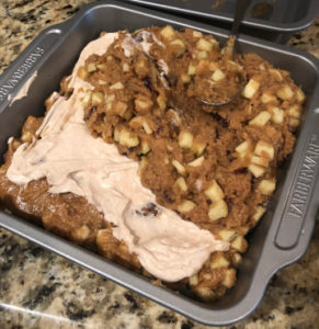 Add in diced apples and cranberries.