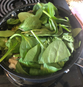 Add broccoli and spinach and stir to combine. Cover and let rest.