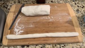 Transfer dough onto flour-dusted work surface. Knead until dough comes together completely. Cut dough into 4-6 sections, and roll each section into a thick rope.